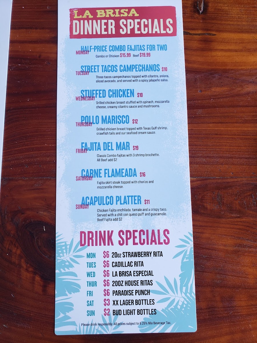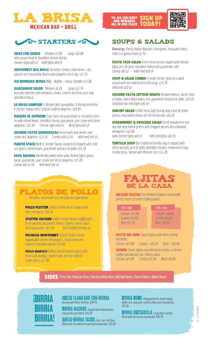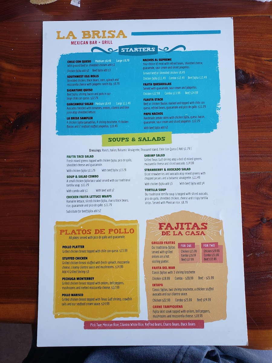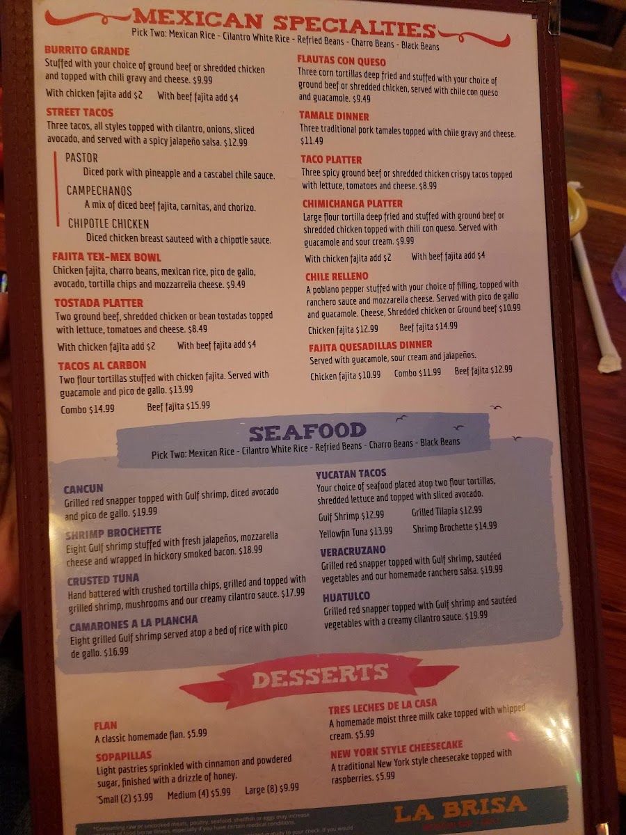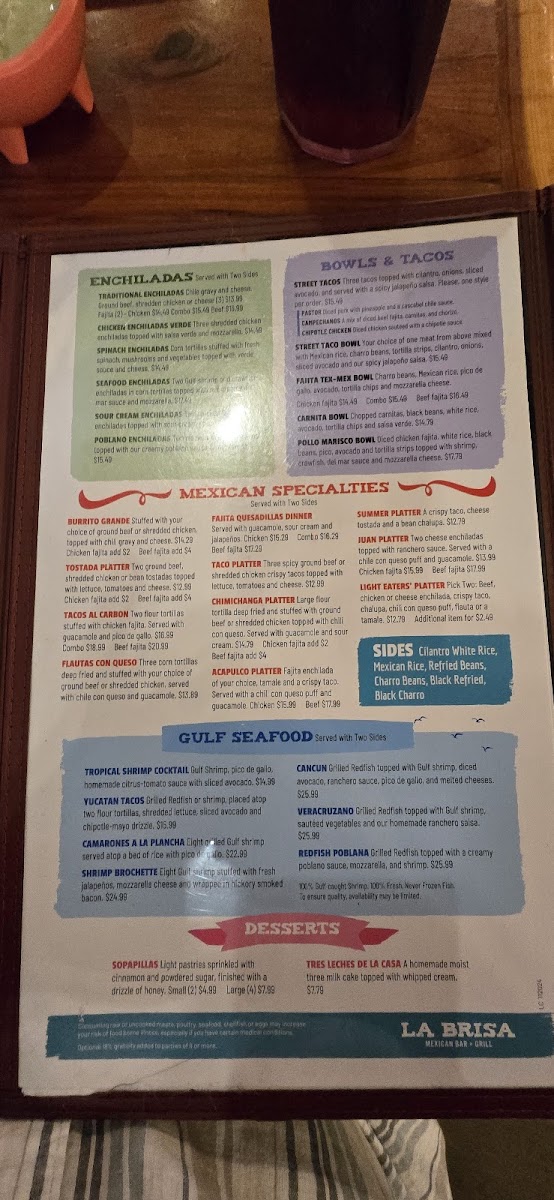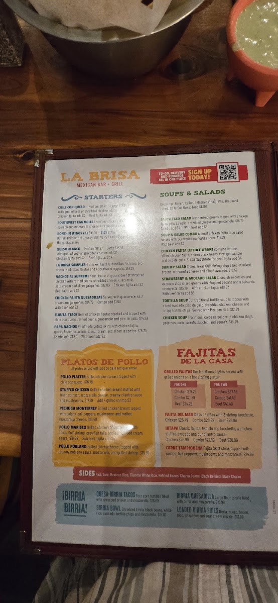 La Brisa Mexican Bar & Grill Menu (Update 2025)